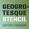 Geogrotesque Stencil is the newest member of the popular Geogrotesque family, ostensibly a display typeface, but one which goes the extra mile in trying to solve some of the typical problems associated with stencil fonts.